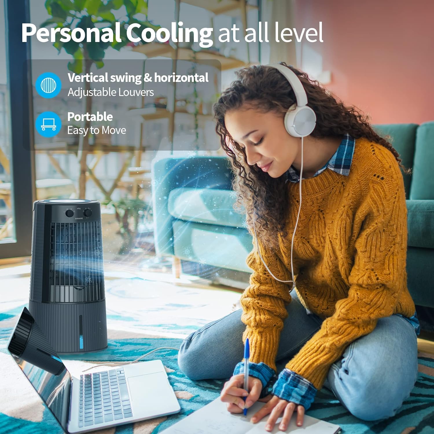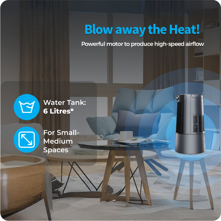Standard fans use their blades to circulate air in the room, but they don’t cool the hot air. Air coolers use the natural process of evaporation to cool the hot air and use a powerful fan to distribute cool air in the entire room. When water transforms into water vapor through evaporation, the temperate of hot dry air can drop significantly.
